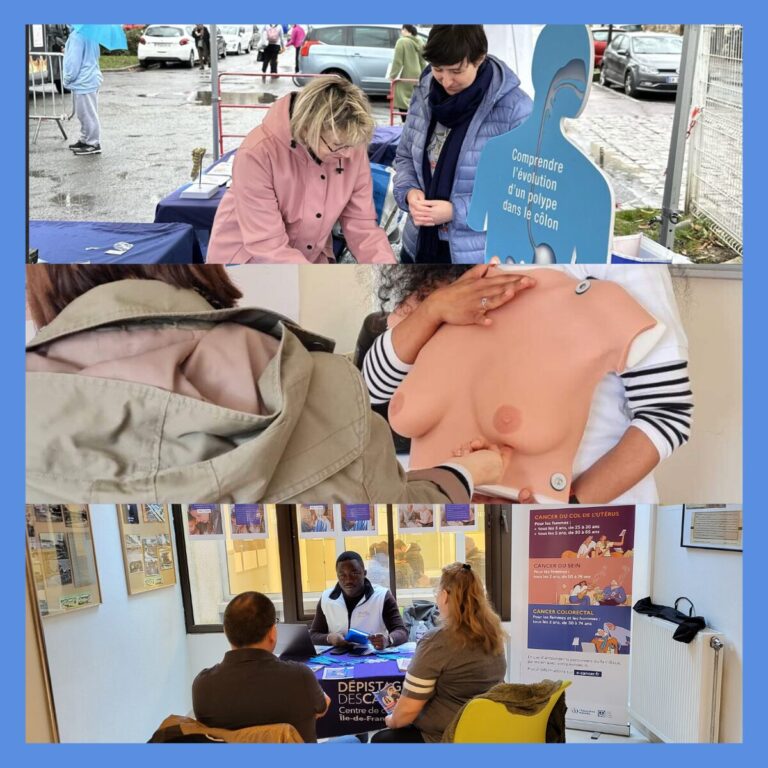 📍 111 actions ont Ă©tĂ© menĂ©es en ĂŽle-de-France, dans les 8 dĂ©partements avec plus de 100 partenaires : des stands et des remises de kits dans les Ă©tablissements de soins, mairies, entreprises, foyers, associations, marchĂ©s, lieux de vie et de passage…mais aussi des webinaires, des formations, des actions mobiles, des immersions pĂ©dagogiques (ex : CĂ´lon Tour), des dĂ©fis en ligne, des journĂ©es sur les 3 dĂ©pistages, des prises de rendez-vous pour la mammographie ou frottis, etc
